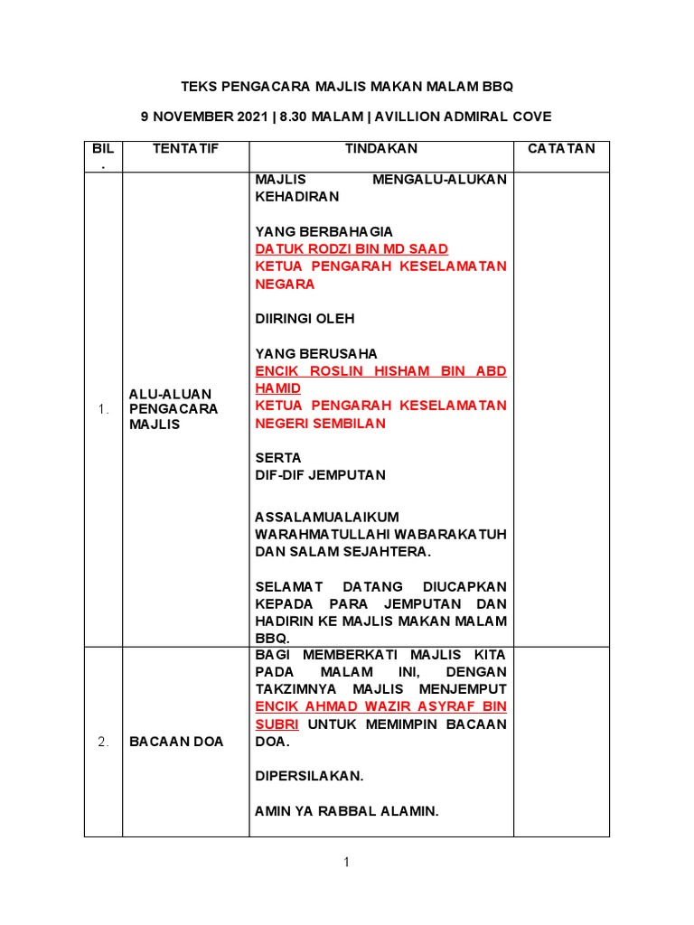 Teks Pengacara Majlis Makan Malam Bbq Oacp Pdf